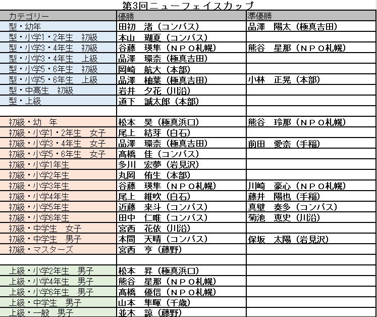 第3回ニューフェースカップ空手道選手権大会が真駒内セキスイハイムアリーナ附属体育館で行われました。