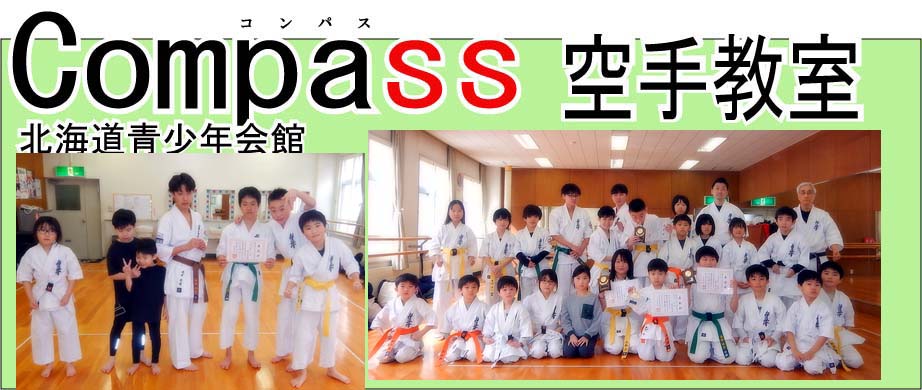 2013年12月からスタートした「北海道青少年会館コンパス」が主催する「空手教室」です。真駒内柏丘の閑静な住宅街の中にあり、子供から大人までそれぞれのニーズに応じた稽古を行います。